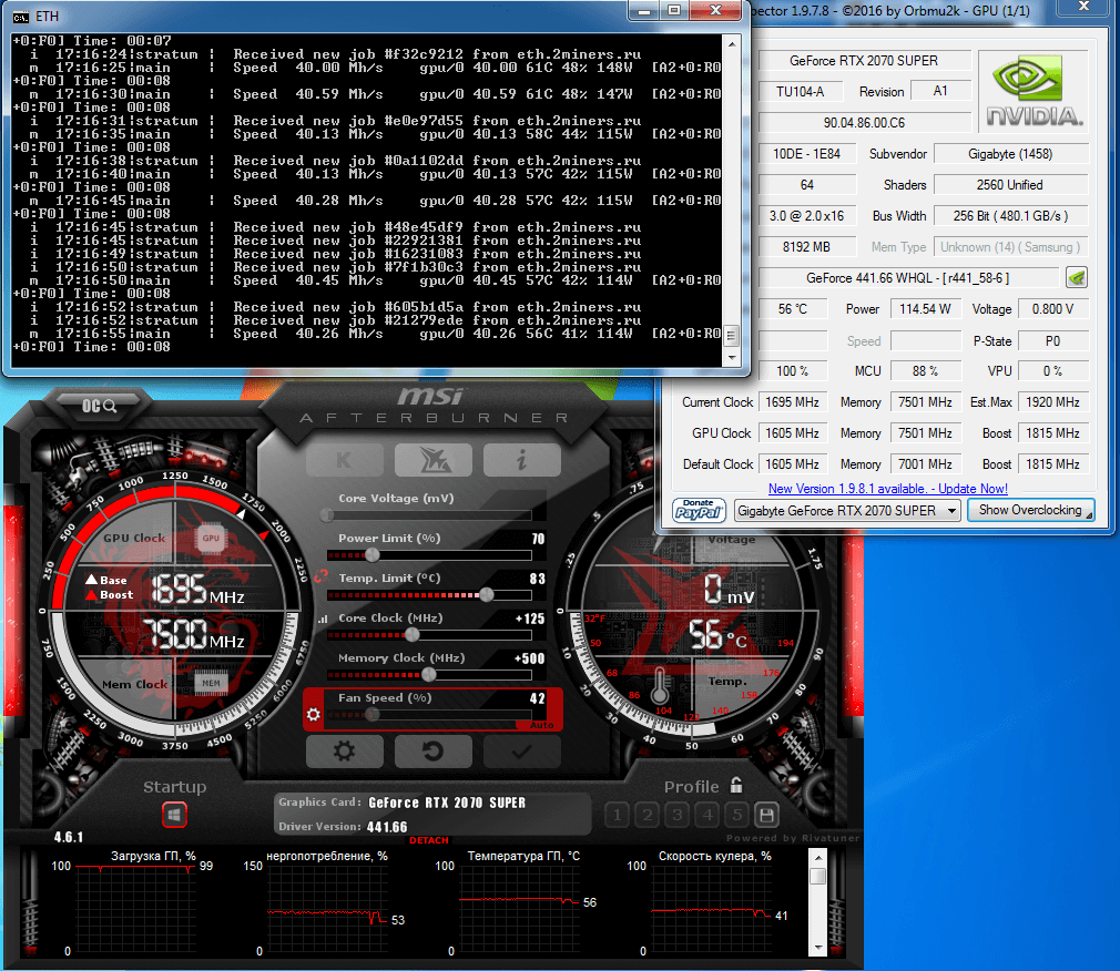 It’s not efficient for the 10xx series: the hash rate of 1070, 1070ti, and 1080 is 1.55, 1.5, and 1.65 respectively. But it works well with the 2070 and 2070s, where the hash rate is directly dependent on the Power Limit value. If you set PL at 240W, the 2070s with 8GB consumes around 197W and gives out a decent hash rate (comparable to the 1080ti with 11GB).