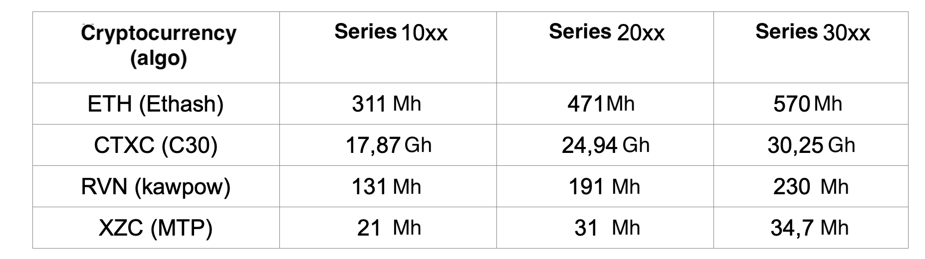The new series must have improved this value to some extent (by 20–30%). They haven’t raised it multiple times (like with Ether), so even in 2020 the 10xx series GPUs are working well on this algorithm.