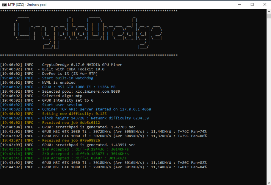 CryptoDredge is a miner for Nvidia graphics cards. According to its developers, it is easy to use and is highly-optimized. They also focused on power consumption and introduced the fee – 2% for MTP algorithm and 1% for the rest.