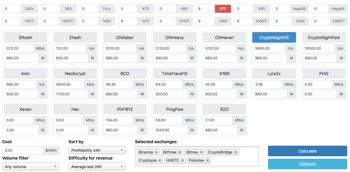 As usual, we used WhatToMine to calculate mining profitability. Let’s take eight Radeon RX 570 graphics cards as an example and click on the target algorithm.