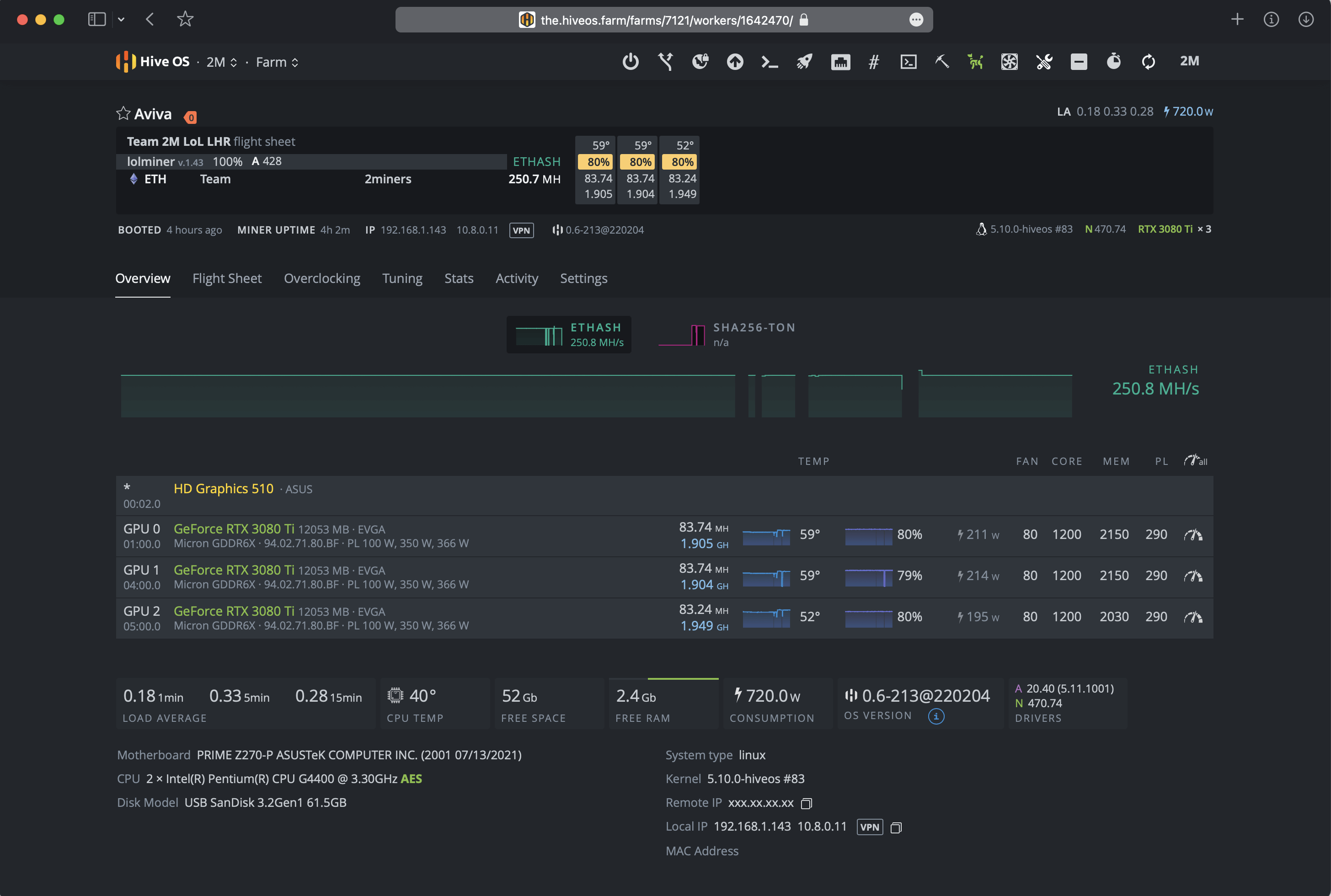 The miner’s parameters for NVIDIA RTX 3080 Ti: