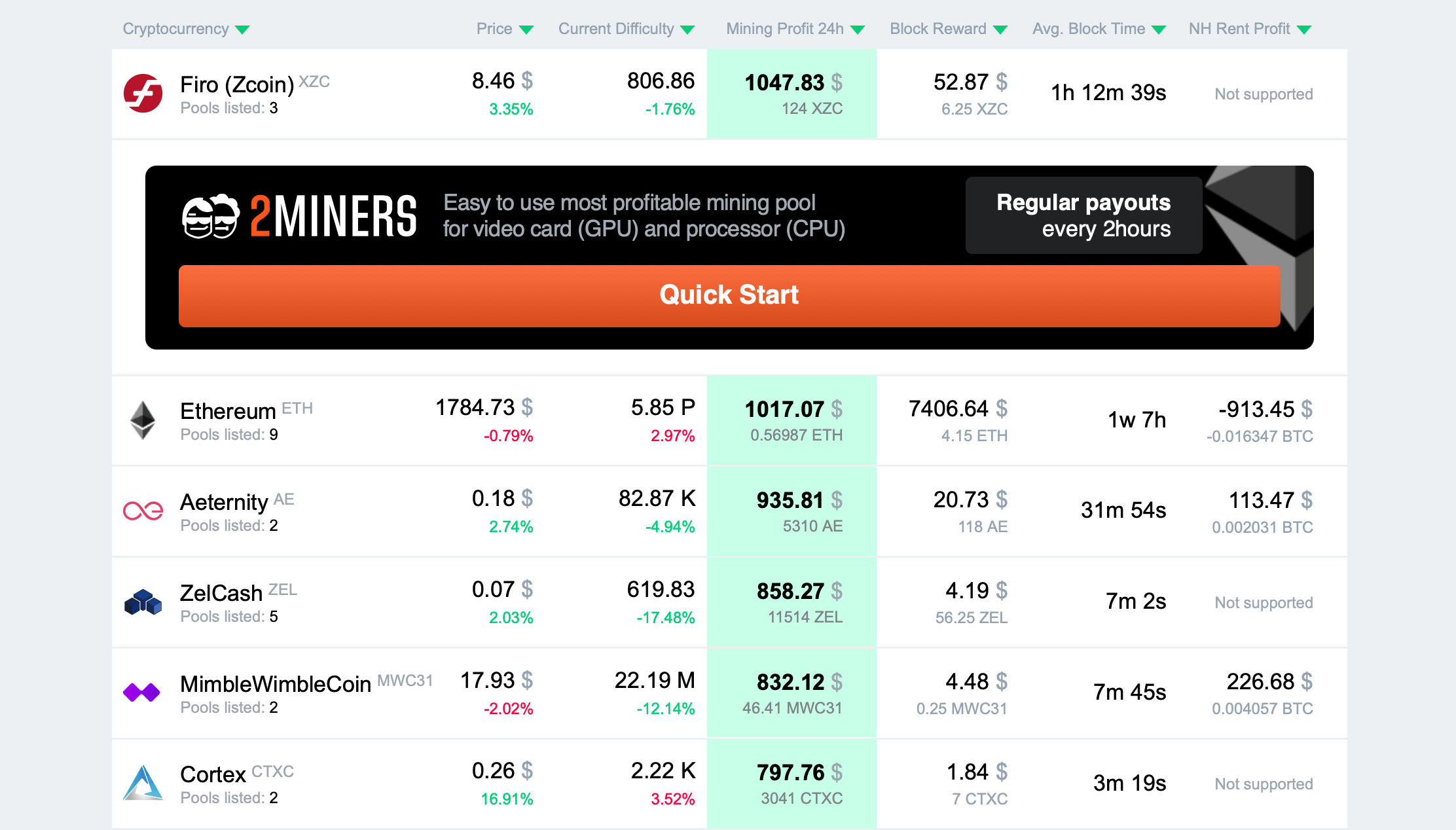 If you want to learn how to use mining calculators, read: How to use 2CryptoCalc Mining Profitability Calculator.