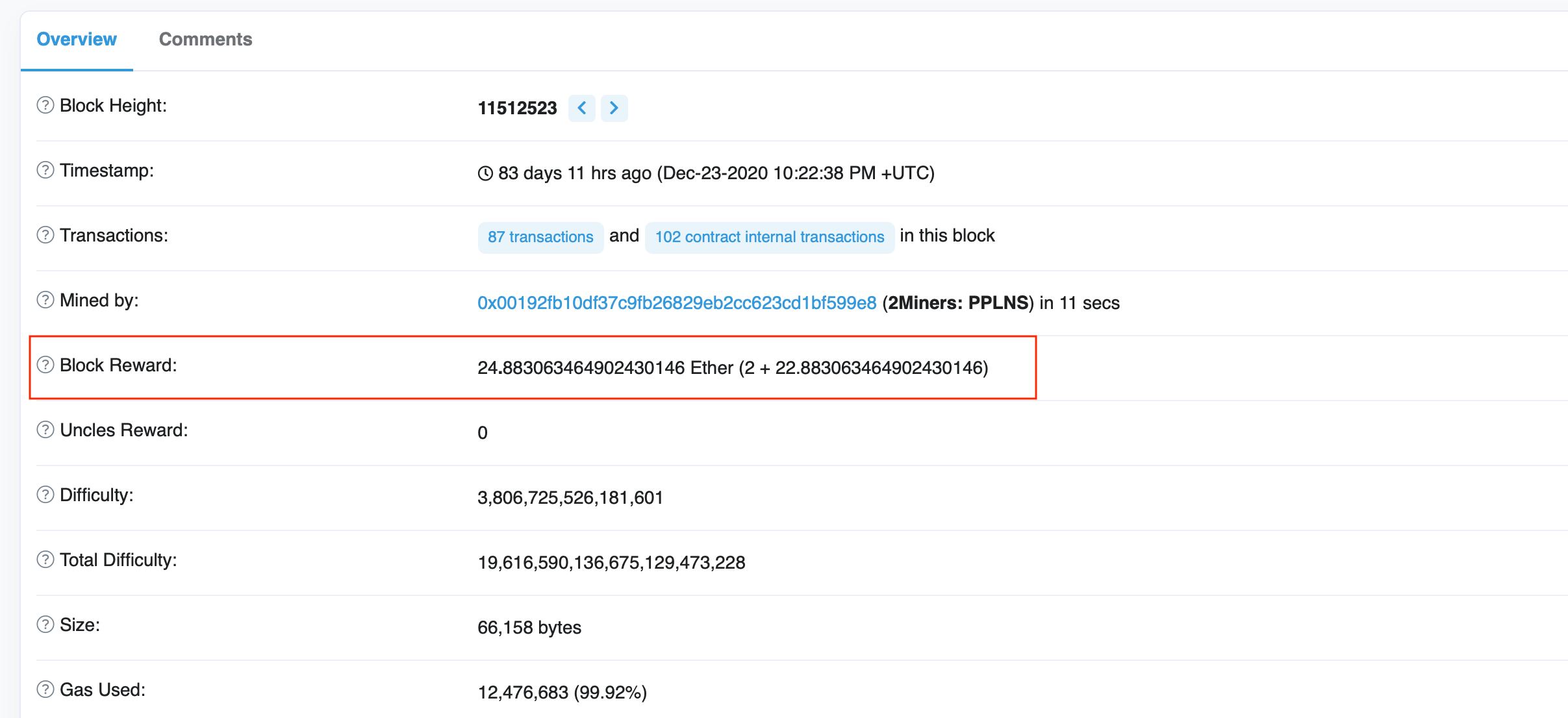 If you want to see what the fees are at the moment, you can go to the Found Blocks section of the 2Miners Ethereum pool. Look at the Reward column. The bigger the blocks, the better for miners and the worse for regular Ethereum network users as they have to pay higher fees.