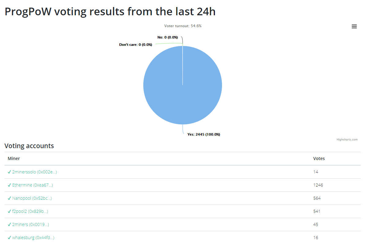 More than 50% of the #Ethereum hashrate is voting in favor of ProgPoW https://t.co/VcvTurIMVu It is time to move along and merge #ProgPoW support into Geth & Parity and ultimately decide on a block number when ProgPoW will activate on the Ethereum main net.