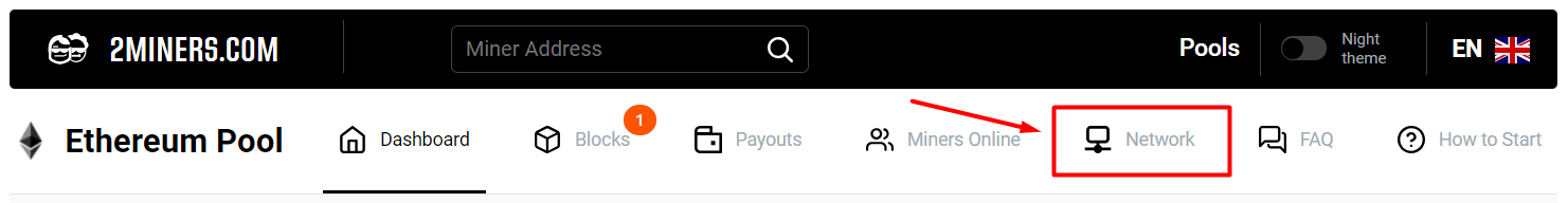 You could now easily monitor the node’s performance of any Ethash coins presented on 2Miners. Click the “Network” tab at your dashboard.