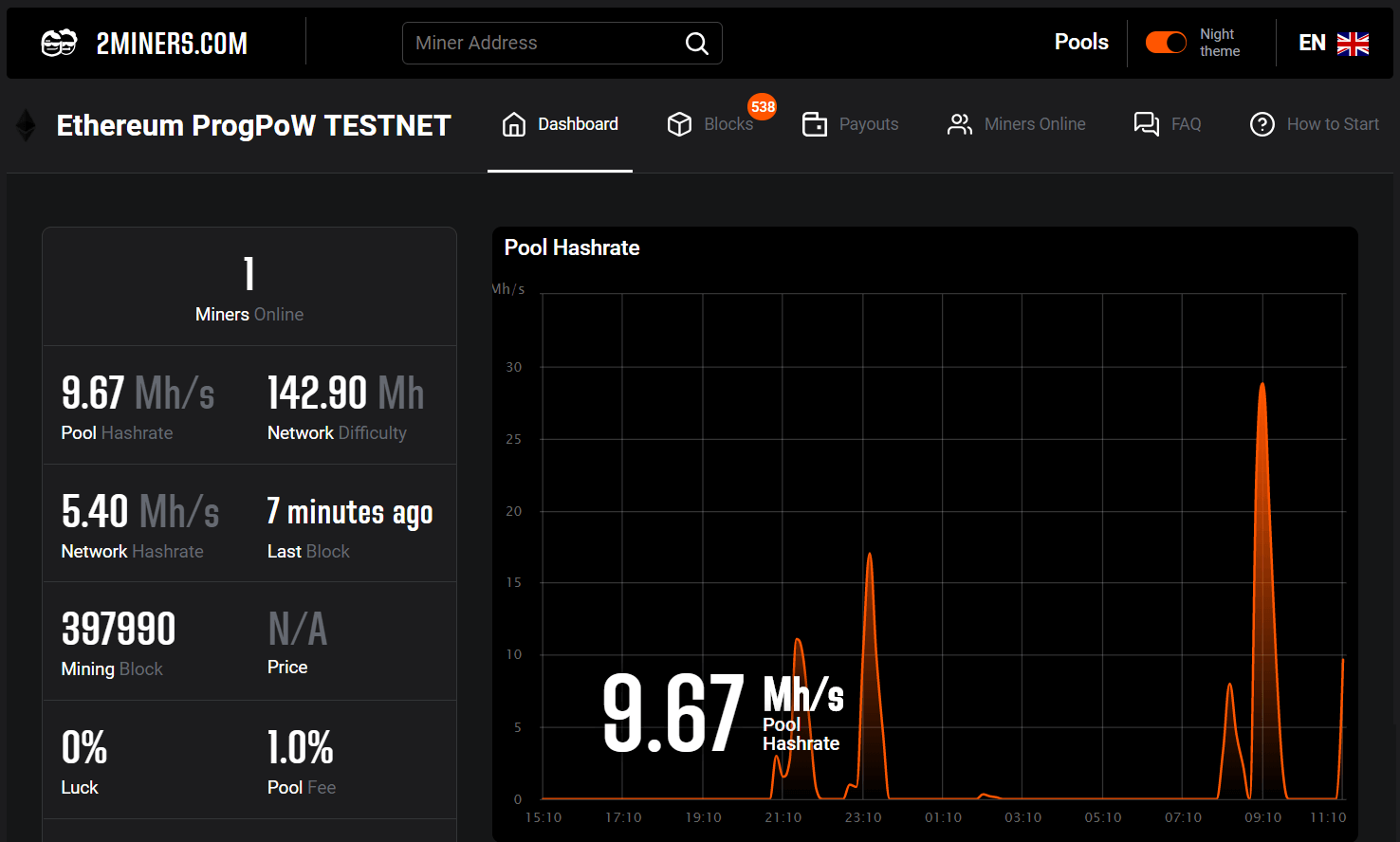 2Miners has successfully launched an Ethereum ProgPoW test network. The ProgPoW pool is online, so anyone can try mining ProgPoW Ether on the test network.