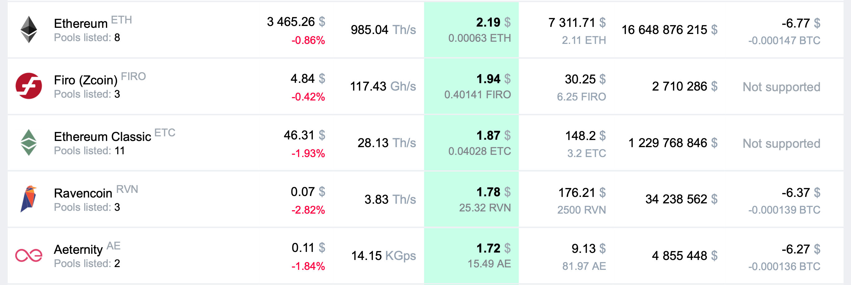 Ethereum Classic is the second most popular cryptocurrency on 2Miners, and now Ethereum Classic miners can benefit from the same solution. Ethereum Classic is becoming more and more popular among miners thanks to the growing mining profitability. Take a look at the mining profitability of one Nvidia RTX 1080Ti graphics card. Ethereum Classic comes third and is far ahead of the popular Ravencoin.