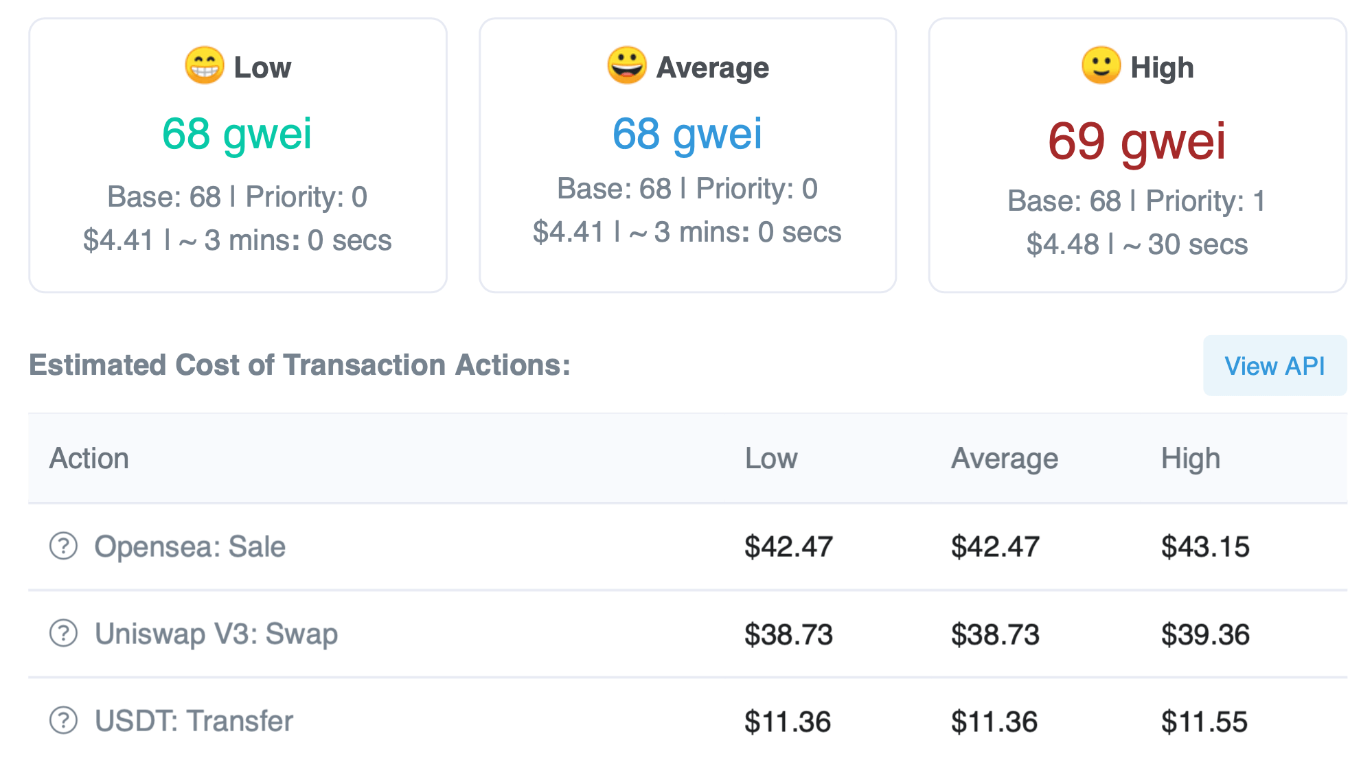 Let’s see the cost of a transaction in ETH blockchain at the time of writing. A fast Ether transaction costs $4.48, fast ERC20 token transaction costs $11, and transaction on Uniswap decentralized exchange costs $39. Selling NFTs on the previously discussed OpenSea exchange costs $43.