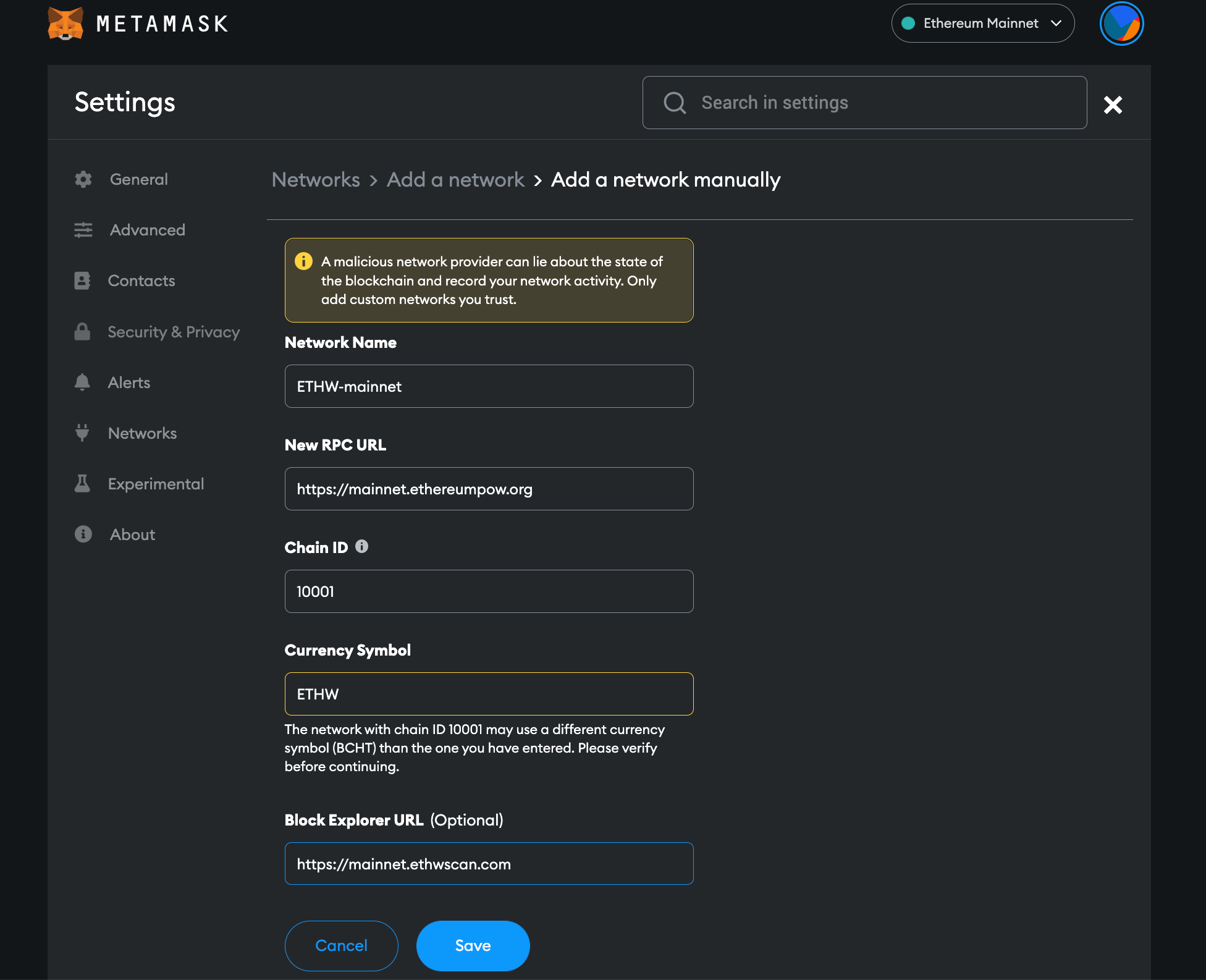 How to Add Ethereum PoW (ETHW) Cryptocurrency Network to MetaMask Wallet