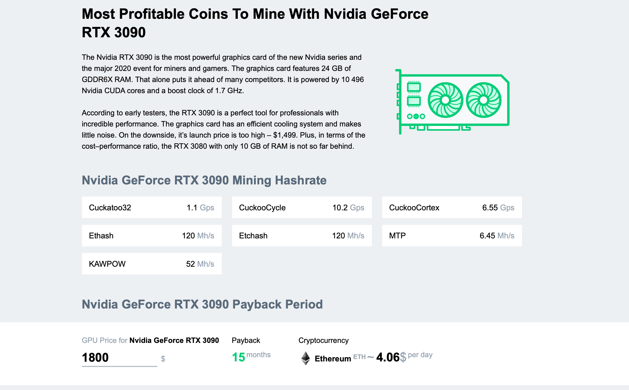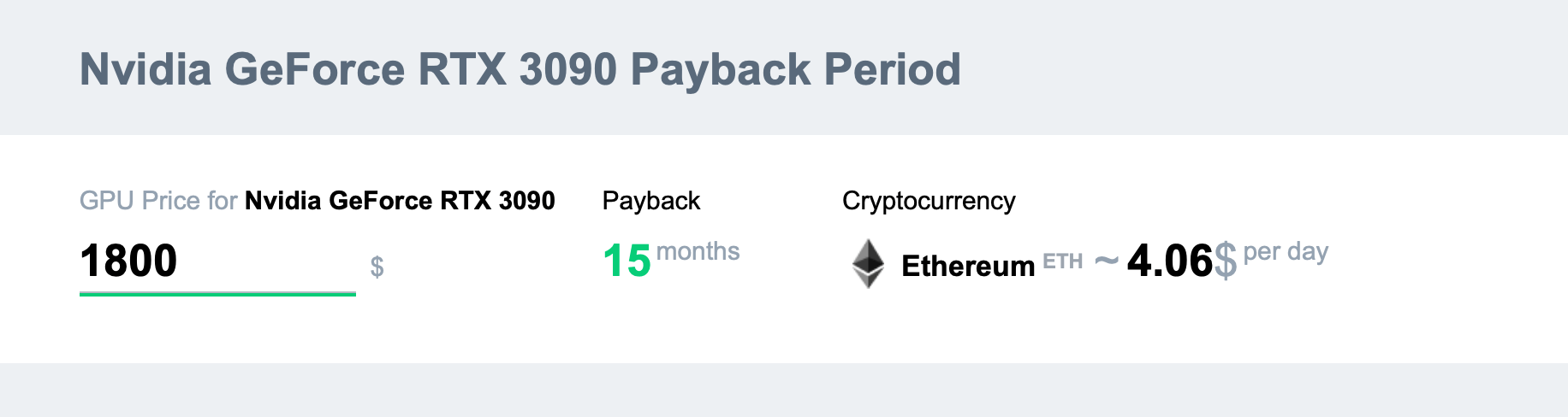 The pricing will not always correspond to the place where you live. If you see that the price you have is completely different, you can go to the page of a certain graphics card and enter your price there. This way, you will get the accurate estimation of the payback period.
