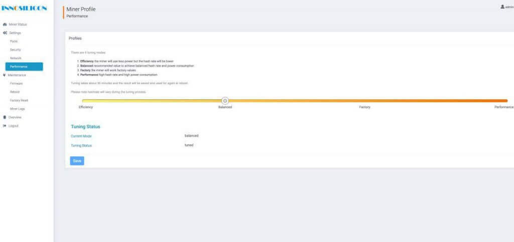 You can also configure the performance of the device. The more to the right the slider is, the higher the performance and power consumption.