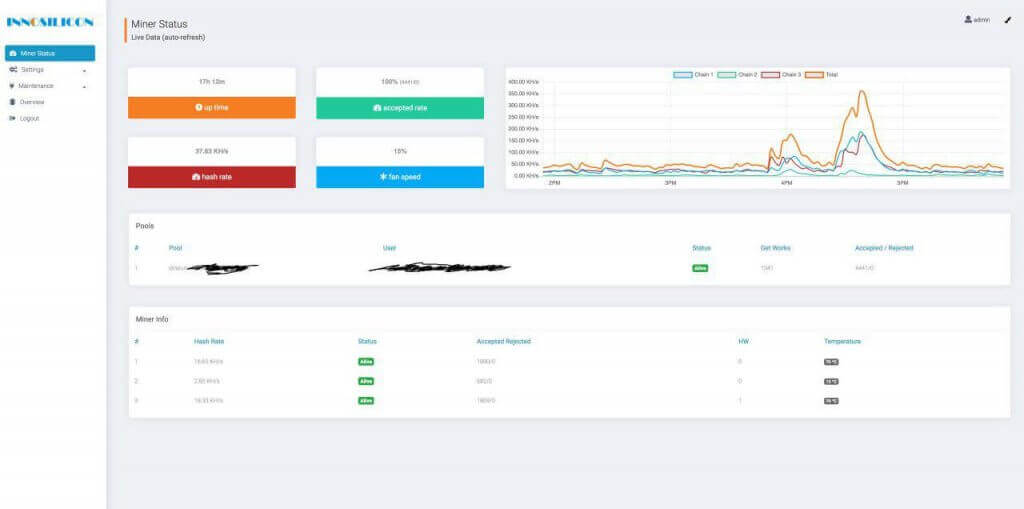 We’ve been testing the Z9 Mini at 2Miners for a couple of days. 3 devices together give the average hashrate of 50 KS/s. Each of them is more than 15 KS/s while the manufacturer has specified just 10 KS/s. That’s 50% than expected! Great performance. However, we’ll remain device testing.