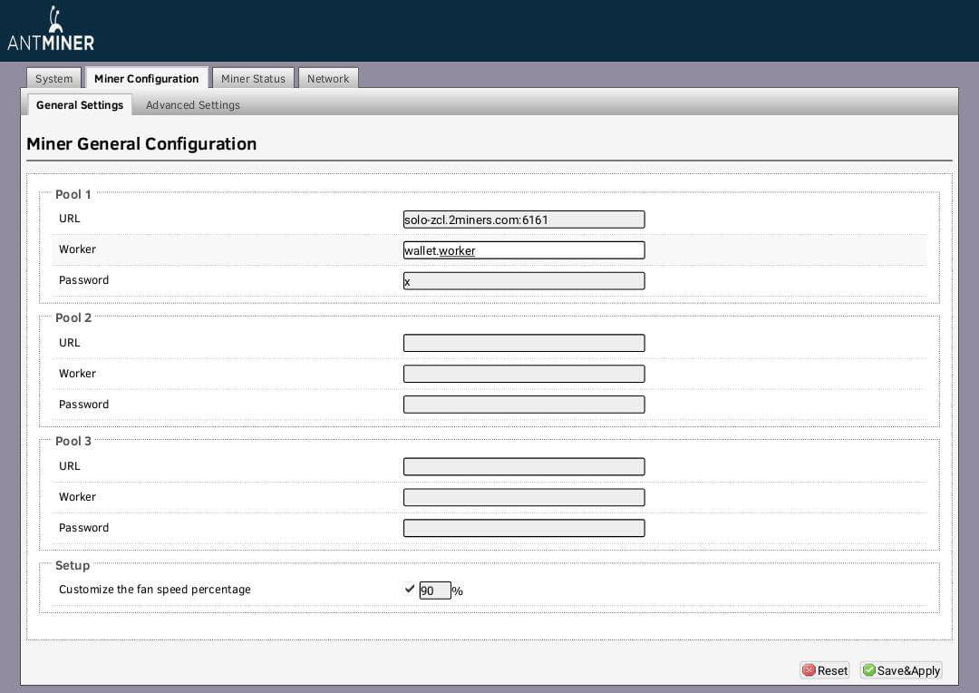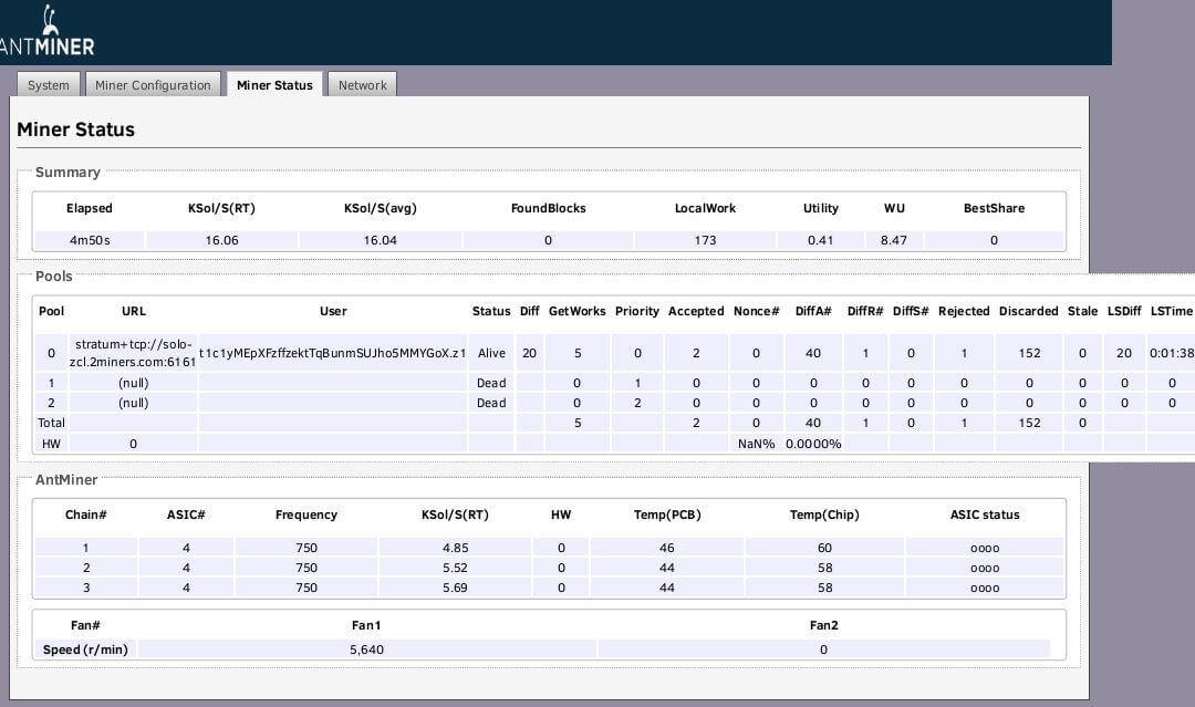 URL - stratum+tcp://zec.2miners.com:1111 WORKER - t1Jx5s9YJCpGjdqPK3eEqZjde7Kv1mN3h2m.Miner_A9 PASSWORD - x