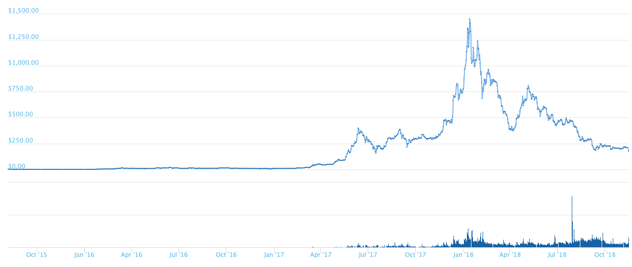 Ethereum is not as old as Bitcoin, but its price has changed in a similar way. At the end of 2016, it was $10. In January 2018, the price of Ether exceeded $1,000.