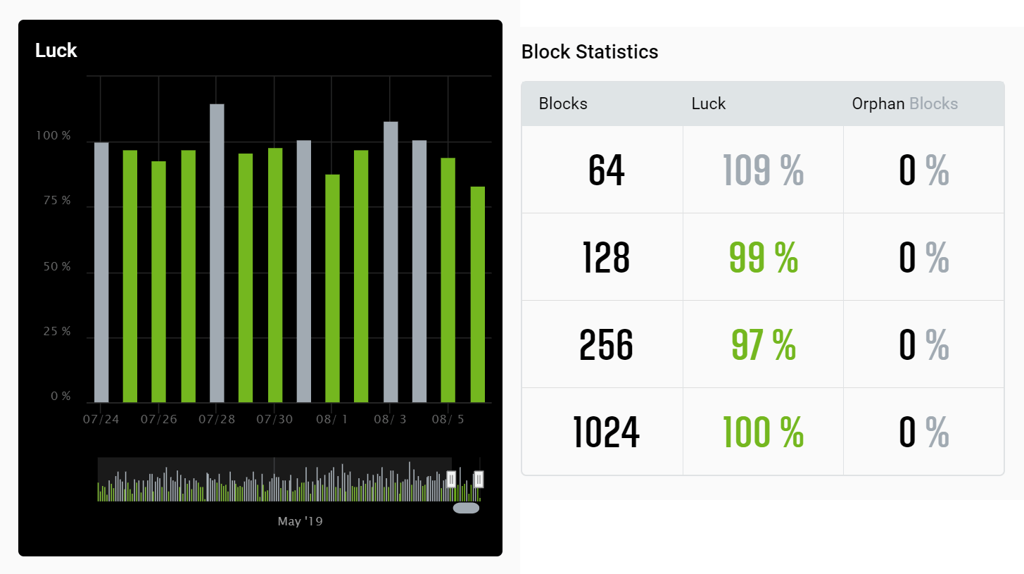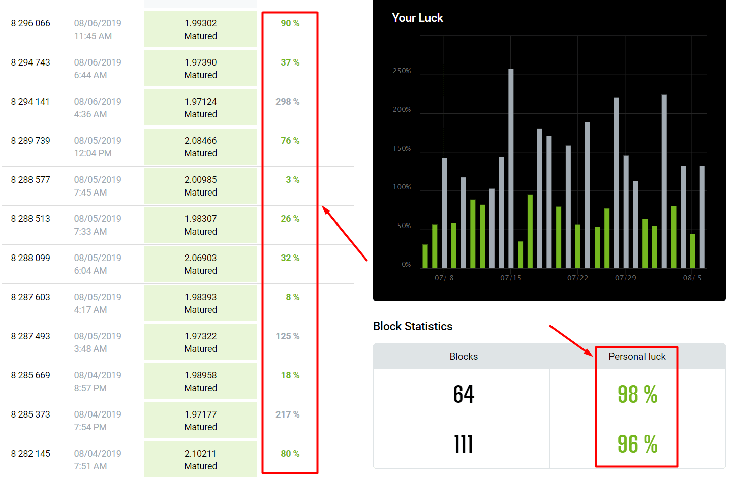 Patience is essential for the miner. It’s hard to accept, but it’s true. If you patiently continue to mine your Luck will tend to 100%. We often see rookie miners worried about Luck being too high. They change the mining pool; they shift the coin they mine, etc. However, they just need some patience.