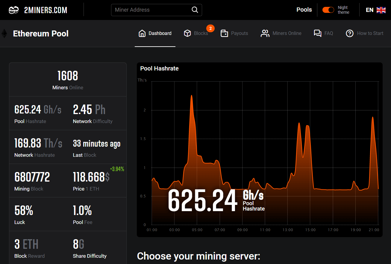 2Miners Night Mode has been deployed. The switch button located at the top right corner of every pool’s dashboard. Let’s check how it works for Ethereum.