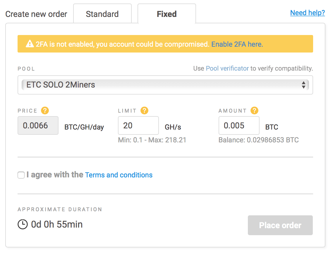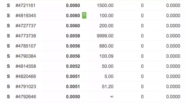 Here, while the market price is 0.0085, there are two orders twice cheaper, and please, pay particular attention to the order with INFINITE speed, i.e., someone is ready to rent ANY number of farms for this money.