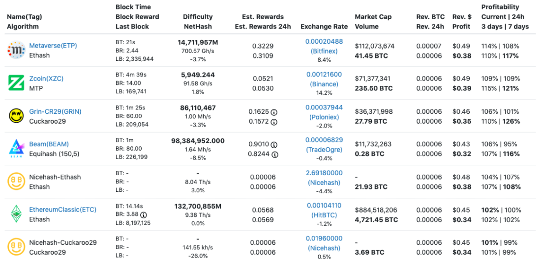 AVG. PRICE – $1,347 HASH RATE ON ETHASH – 52.5 Mh/s HASH RATE ON ZHASH – 96 h/s CORE CLOCK – 1545 MHz VIDEO MEMORY – 11 GB GDDR6 CONSUMPTION – 260 W WHAT TO MINE – Zcoin, Beam, Grin, Ethereum, Ravencoin, Ethereum Classic, Metaverse, Expanse MAX. PROFIT IN 24 HOURS – $1.65 on Zcoin