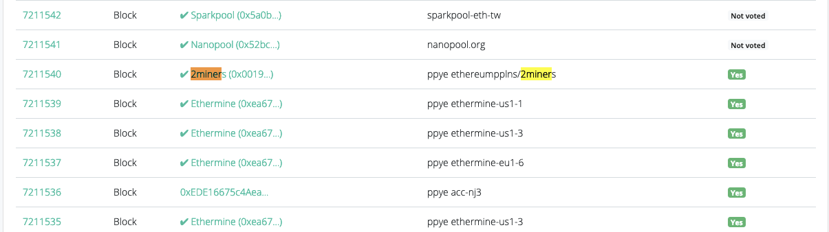 In Ethereum, we are seeing a very similar approach. The major mining pool Ethermine was the first to add a special “PPYE(S)” tag to its blocks.