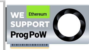 We created a special sticker “We support ProgPoW”, and we encourage all mining pools in favor of ProgPoW to use it. All you need to do is to insert the logo of your pool into a white circle on the GPU cooler.